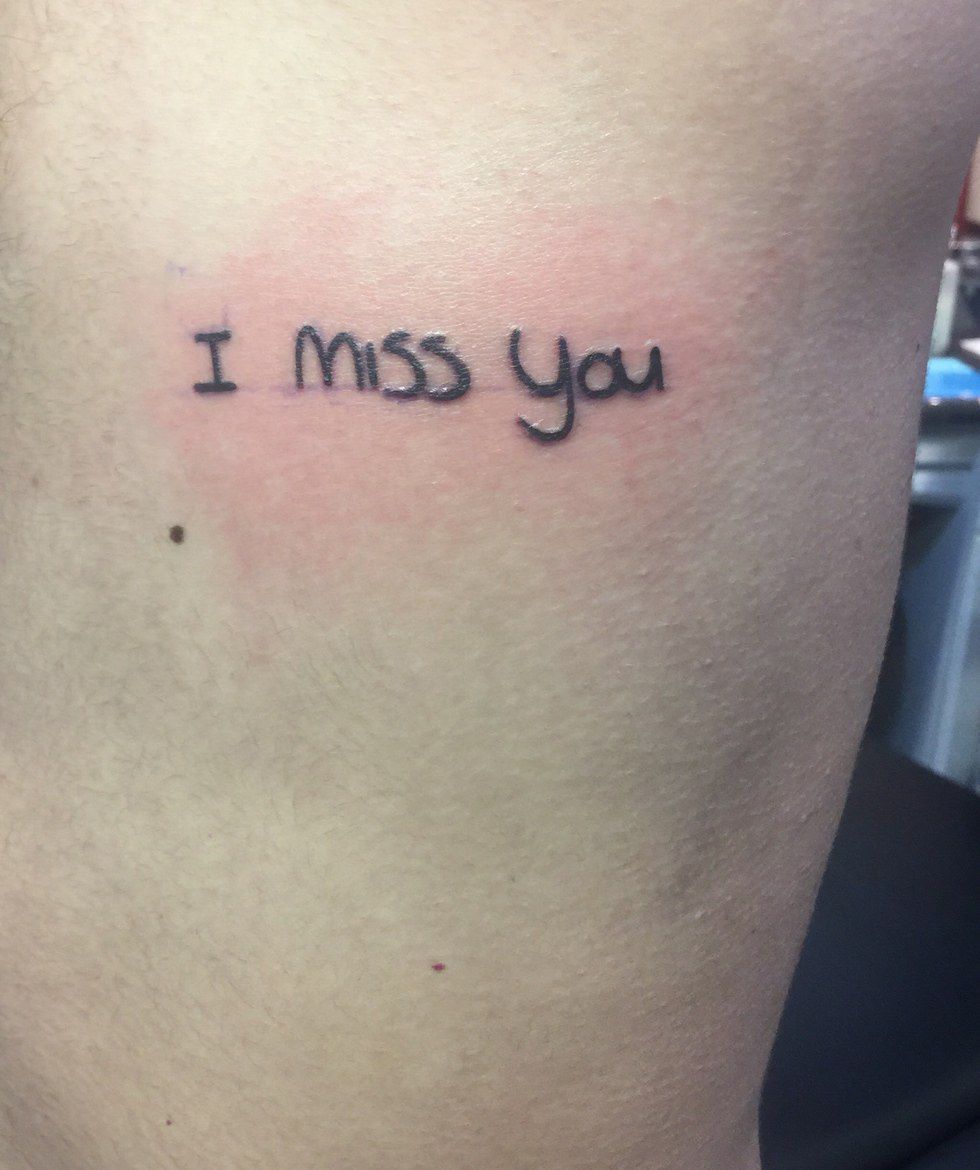 "My mom wrote this to me in a letter [before she passed], so I put it on my body to show her I miss her too."
