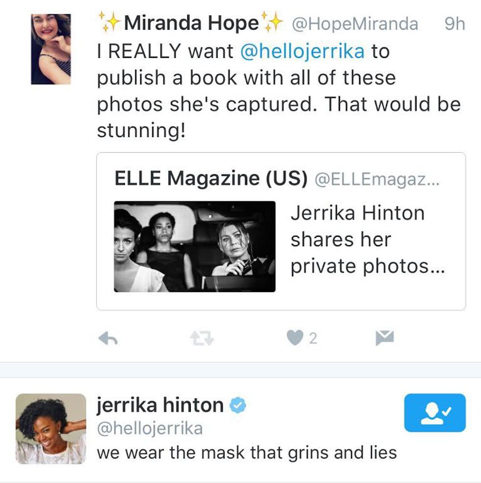 *Hits follow button on every social media outlet featuring Jerrika Hinton*