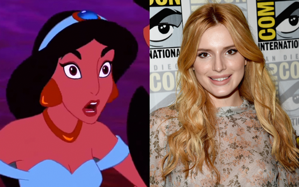 In almost making the Aladdin film, the casting team plans to cast Bella Thorne as Jasmine. If you look up an image of Bella Thorne, I could tell you with some confidence that she in no way resembles a girl from the Middle East.