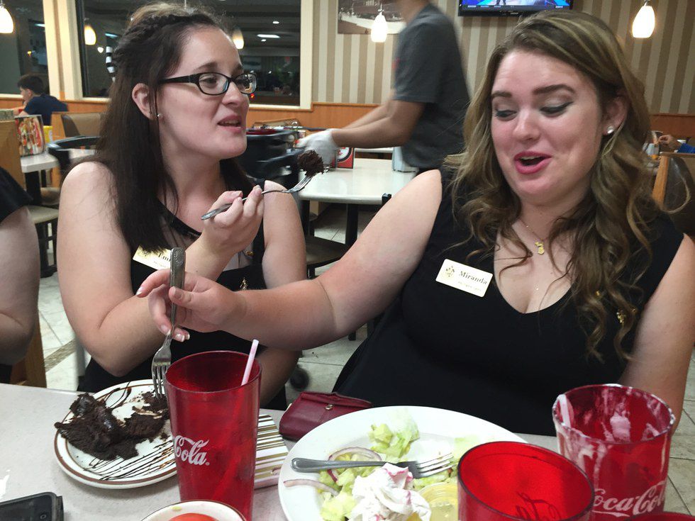 What you don't see here is that the sister on the left is asking the sister on the right to do a "Lady and the Tramp" with her. With cake. And the one on the right is replying with a hard "no." It was hilarious.One of the things we did that was much more of a low-key energy-giver was this: we were asked to imagine our lives without our sorority. Maybe for some of us, that was a difficult or near-impossible task. For me, it was easy, because it wasn't that long ago that I was a stranger to almost every single one of the people there. I went to class, I went home, and that was it. I didn't have many friends, and I went back and forth between liking school and just being kind of lukewarm about it. Had I graduated in that state, I would have been satisfied with my undergraduate experience, but it was really a pretty lonely time. When I was asked to imagine where I would be without my sorority, I knew exactly what my life would look like: my support network would be so much smaller, because I'd have far fewer friends than I have now. I would never have met the amazing women who inspire me to push myself to be more, to do more, every time I see them. I wouldn't have my Big Sister to be crazy with, to complain about class and boys and life with, or to freak out about our favorite shows with.