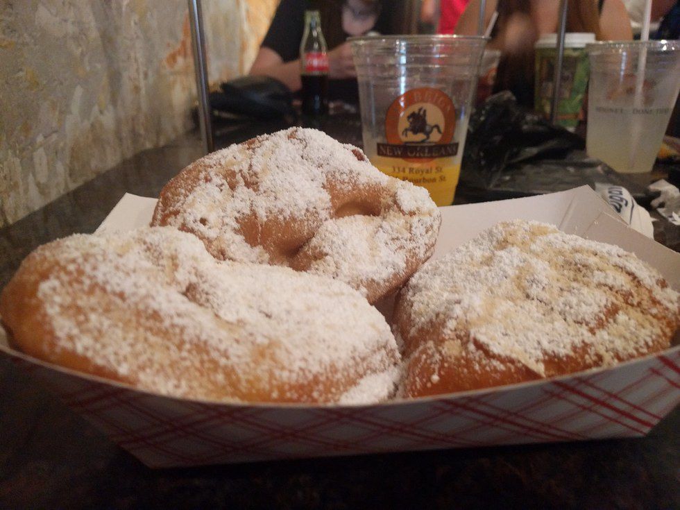 We ended up walking—for a whole extra half of a mile!—to get our beignets. While I sincerely thank Cafe Beignet in downtown NOLA for saving my life (seriously, go check 'em out, it was a pretty cute little place with a cat chilling under one of the benches), I was slightly disappointed by the day's lack of beignet fries and Oreo beignets, which everyone else on my Instagram feed boasted.