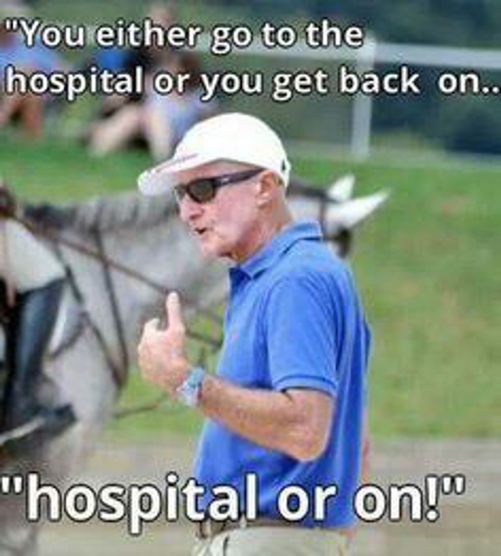 I've fallen off my fair share of times, I think there was only one time I didn't get back on (and that was because I busted my lip open and I was bleeding down onto my shirt). Pretty fair reason not to get back on. Every other time I have gotten back on, though. I've been flipped onto my back, onto my arm (bruised my bone,) hit sideways, fallen on my butt, fallen on my feet. Each time I didn't hesitate to get back on. There's actually footage of me at a show being thrown off but within seconds (I don't think it's on the film) I was back on my feet trying to climb back on by myself. My falls fuel me. When I fall off I become more determined actually. I try to come back stronger than before. A lesson which I've actually carried into my everyday life. When you fall you have to get back up. Like George Morris says...