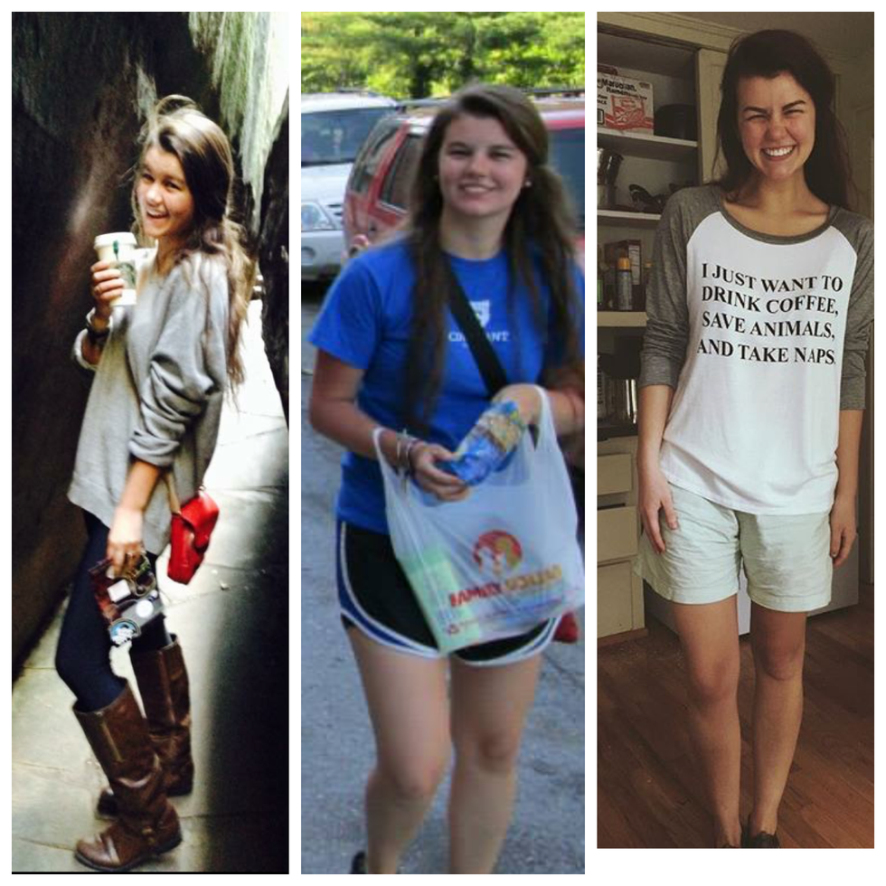 One of my favorite YouTube videos to watch is "Nouvea Parfum." Check it out! This video speaks so much truth into all the work that is done to get those already perfect people into this ideal "actual perfect" body according to this world's standards of perfection. Now, I am not someone saying, "Well I have come to this realization, and I have decided to embrace how I am." I would be a huge hypocrite to say that. I have been through an eating disorder and every day, I continually struggle with my image. Now I know there a lot of people saying and I am sure you have heard it before, "No, you look good just the way you are." We as people take this and say thank you, but does that change how we look at ourselves. Absolutely not. Below I have a picture of me over the past three years. I have gone from weighing 112 to 145 and everywhere in between. I have either been very unhealthy with eating too little or too much.