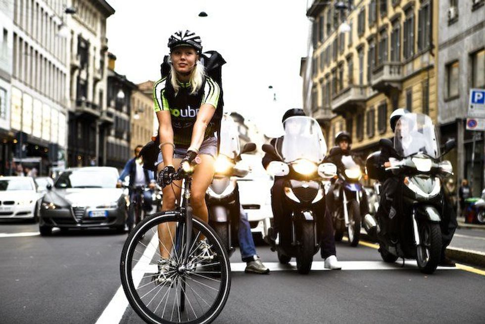Last March, I signed on with Caviar, a food delivery service similar to Postmates and Grubhub that is utilized by restaurants that do not employ their own drivers and cyclists. Bike couriers, also known as cycle couriers or bike messengers, have been around since the creation of the velocipede in the 1860's, and are most often employed in large cities where the prominence of traffic jams causes travel by bicycle to often be much quicker than travel by car. When I took on the job with Caviar, I was given an 18-inch bright orange thermal box that I was to wear as a backpack, and an app that would track my location and through which I could receive new jobs was downloaded on my phone. I figured being a bike courier would be easy enough: bike to point A, pick up food, bike to point B, drop off food.