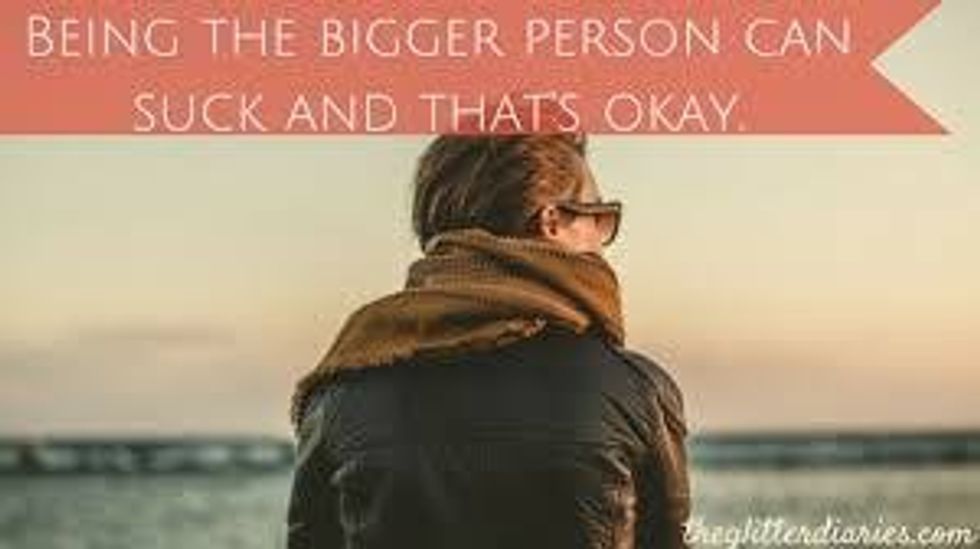 I stumbled upon this idea while searching for inspirational quotes, and it forced me to think: Is this actually true, or is it some nonsense used to discover inner peace? Friendship is a fragile thing. Somehow in this big world, we have the expectation that we will be able to find people who have similar interests, similar values, and similar desires for friendship. Although friends are the people that we turn to during both good times and bad, there are many times when our friendships have to be called into question. No friendship is perfect. Put two or more people together and drama, jealousy, betrayal, sadness, and anger are bound to come up as obstacles. No, I'm not talking about the pseudo-reality of friendships in Gossip Girl, this also happens in real life. When these issues come up the true test of friendship isn't seeing how long the relationship can survive with a festering wound; it's deciding what needs to be done in order for the relationship to endure only minimal damage. Sometimes that turns into either apologizing for something you don't feel you should apologize for, or forgiving somebody who truly hurt you. In other words, conflict between friends is only resolved when somebody acts as the bigger person.