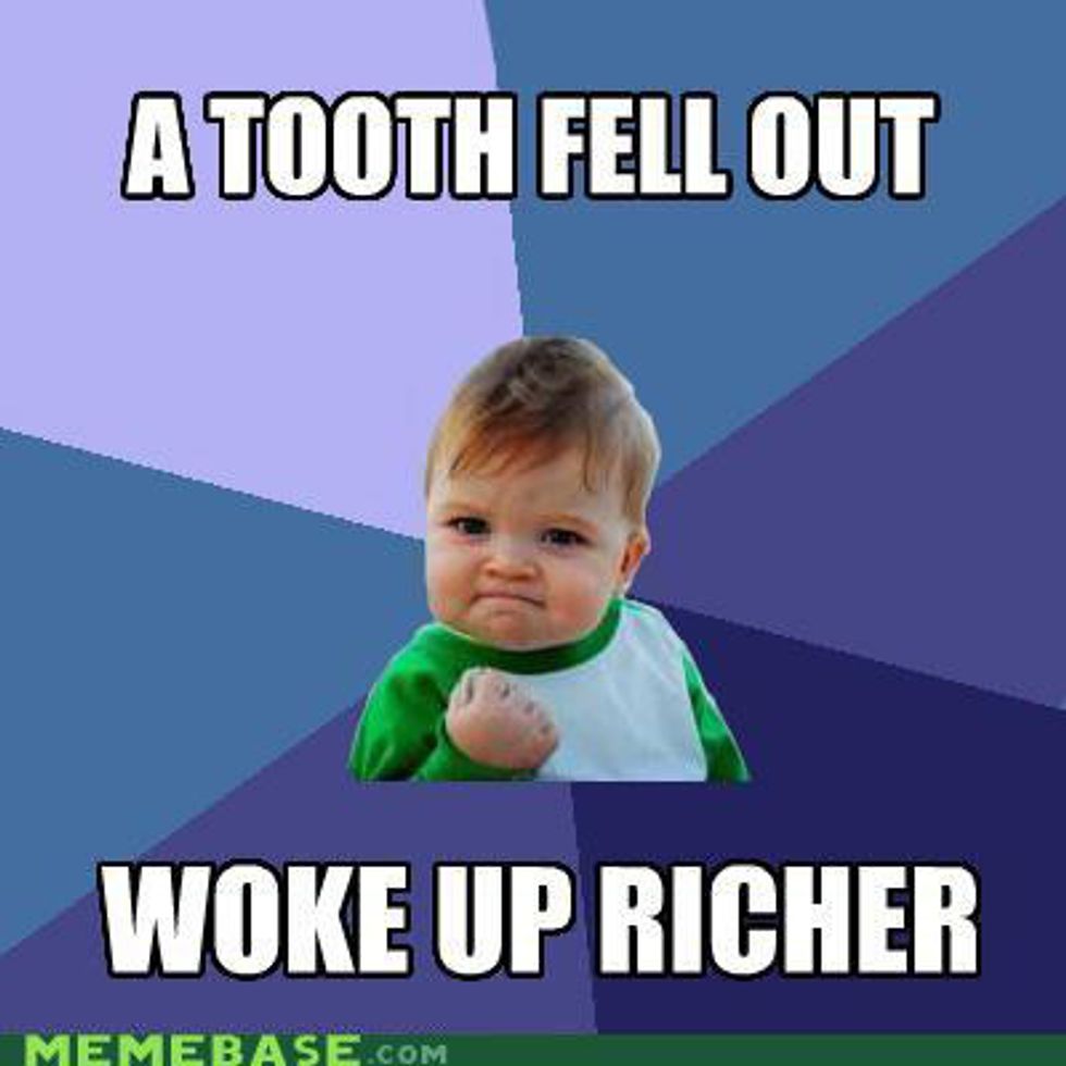 Oh, the excitement you used to get when you lost a tooth because that meant the tooth fairy was coming that night. It was so nice, you got money just for sticking your tooth under your pillow. Now to get money, you actually need a job.