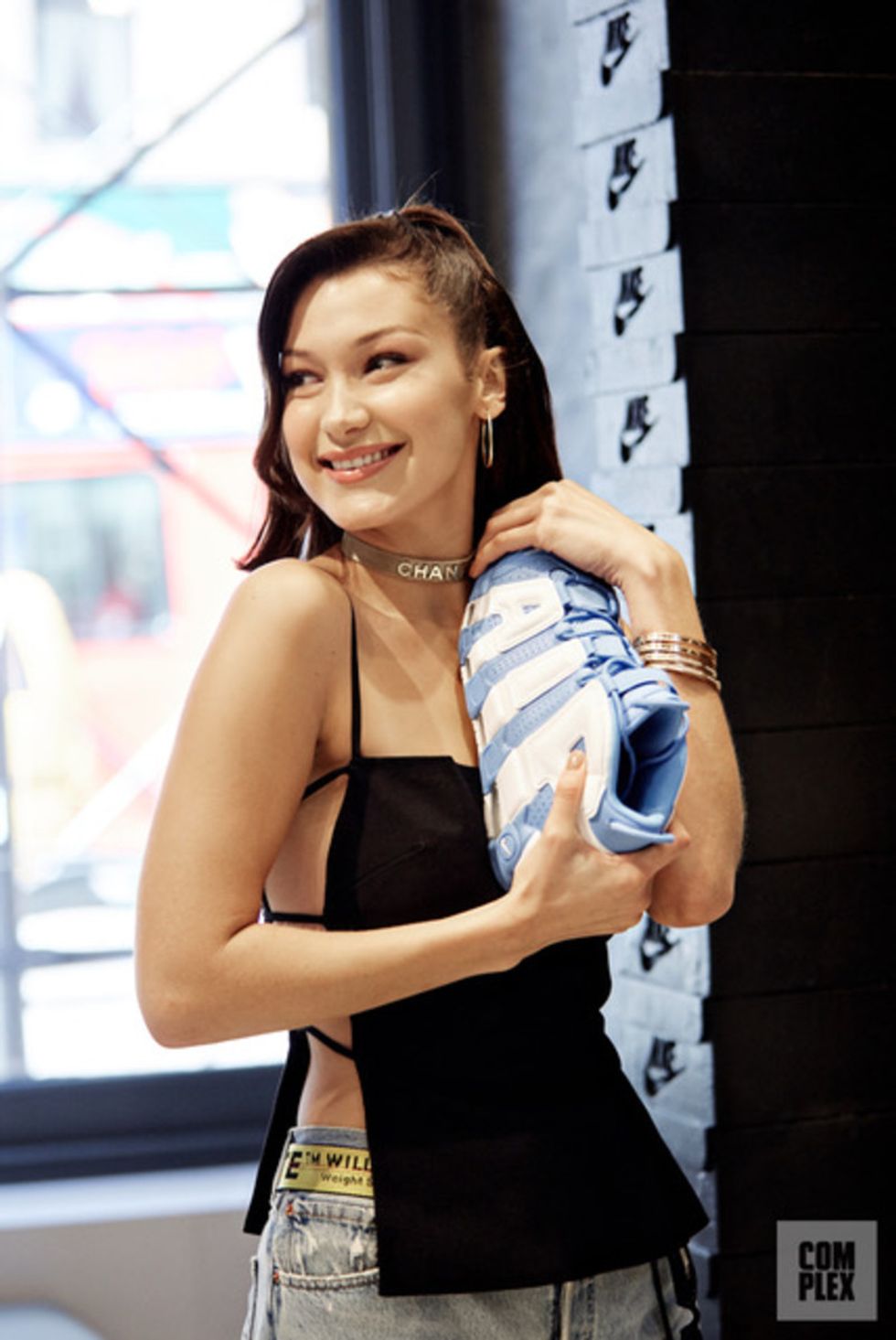 Joe La Puma suggested other basketball sneakers but Ms. Hadid's heart was absolutely set on the Nike Air More Uptempo's. "You know what? I love basketball sneakers and I think they're some of the dopest shoes that Nike has..." Hadid reasoned "But... I mean I already picked these out [Nike Air More Uptempo]. I'm going for these; they're coming home with me."