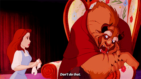 Unlike the Beast at the beginning of the movie, Belle isn't turned away by how the Beast looks. She is a little frightened by the fact he is a beast but she still gives him a chance and doesn't run.