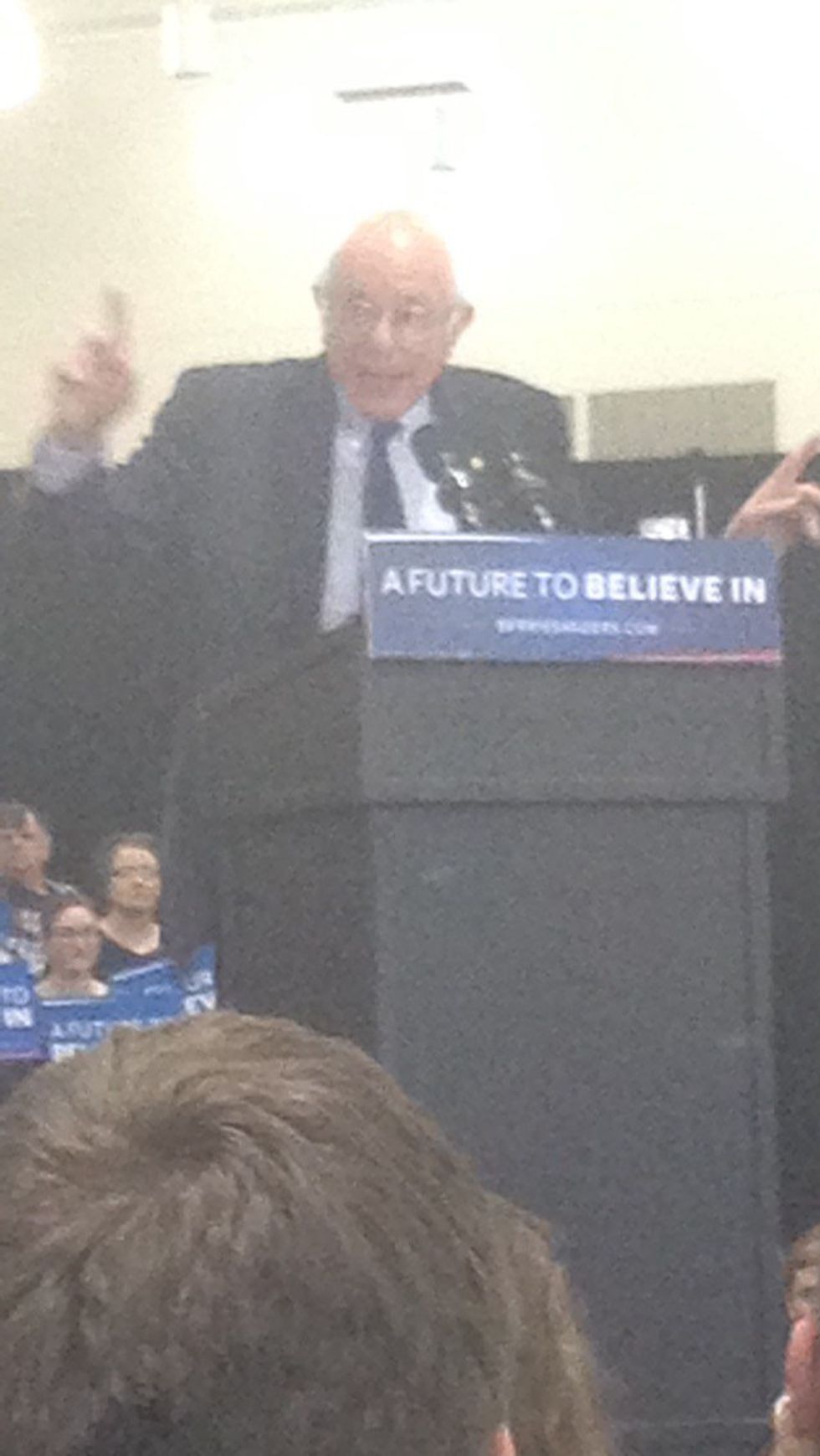 The most exciting time in the office was Tuesday the 19th. We had found out on Sunday that Bernie was coming to Erie for a rally, which was happening on Tuesday. It sounds cliche, but the atmosphere at that rally was absolutely electric. I had a surprisingly good view, given that I was one of the last people to go into the room--my volunteer duties extended to the rally, where I was constantly at the back of the line of people waiting to get in so I could tell them about the security procedures.