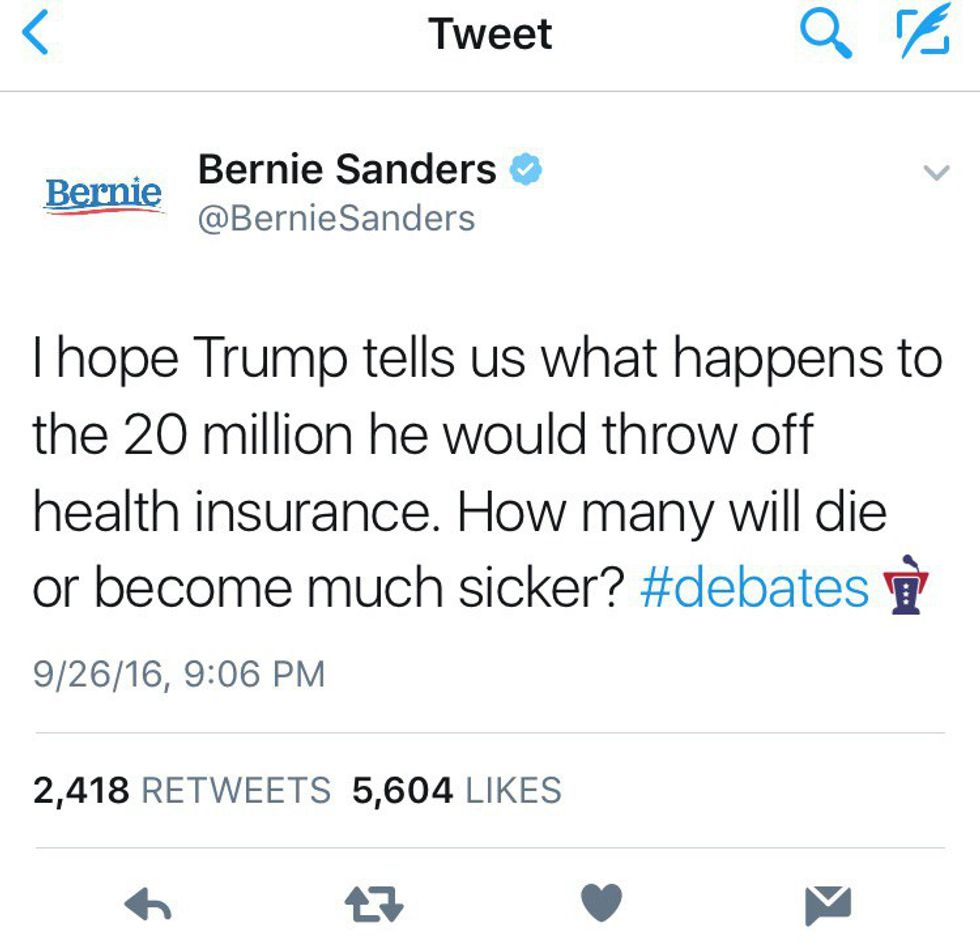 So here is a list of the 10 Best Bernie Sanders Tweets from last night: