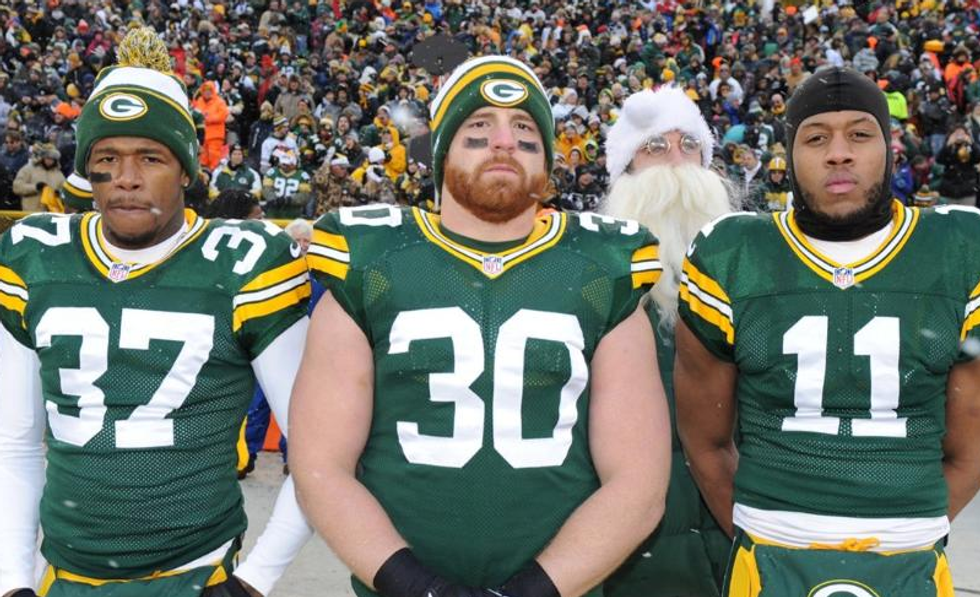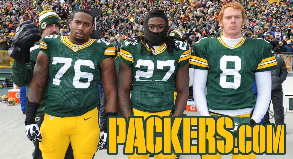 Everyone knows the Green Bay Packers quarterback as the king of the NFC North. His ability to maneuver the pocket, as well as his pinpoint accuracy and strong arm make him almost unstoppable. The secret? Rodgers credits the entire team's amazing chemistry. And it's pretty evident; on the sidelines, Rodgers and his Packers family have a longstanding joke, wherein the QB sneaks into the weekly Captains photo. And the results are hilarious: