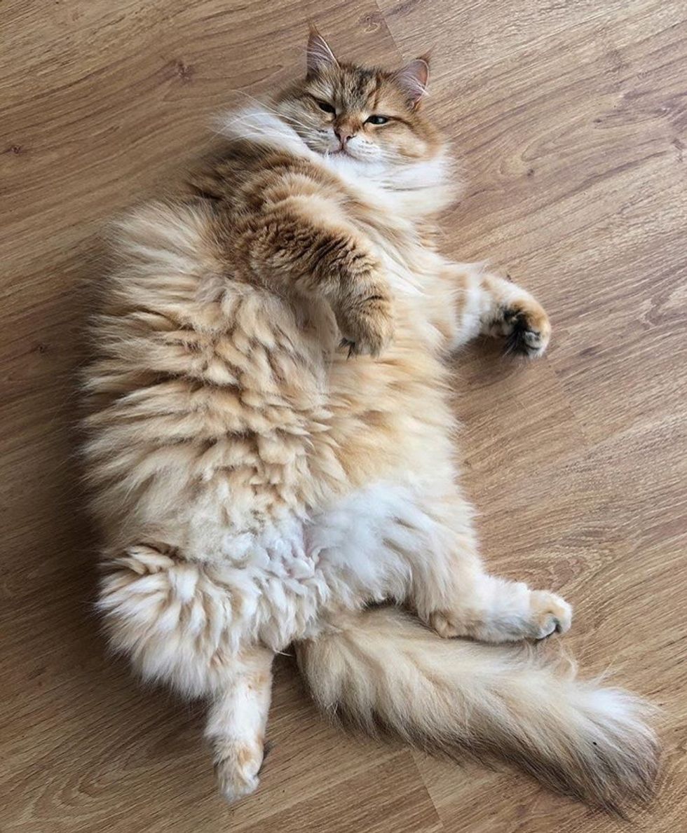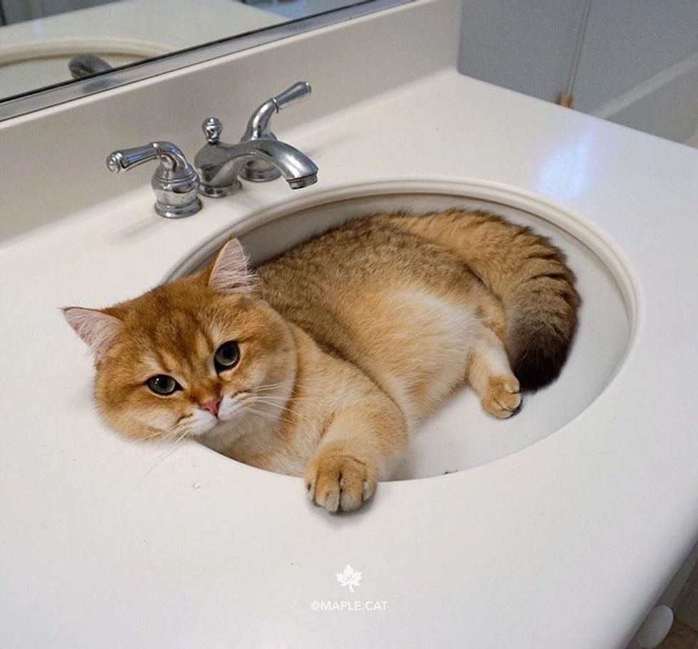 Maple is one of my favorite cats because there are always Instagram stories up of him and sometimes his "mom" will do Q and A questions. His sisters, @plumpycats, are on the list down below. He often curls up in different places like the sink or under the couch so there is always something different to see when you're scrolling through his feed.