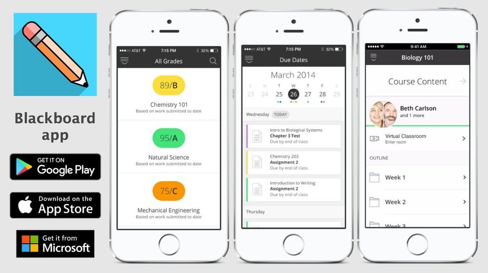 Ah, Blackboard. If you're already in college I'm sure you already know what this is. However, if you haven't downloaded the app, you should. Get notified instantly when your professor finally posts that grade, if your professor posts a test (that you totally forgot about and are so glad that you got the notification for), or look up course documents to study material on-the-go. I don't recommend it for submitting assignments or completing exams, but it is the best way to make sure you don't get behind on updates and announcements from your classes. (Also, it's basically a pocket-sized syllabus / calendar for every class).