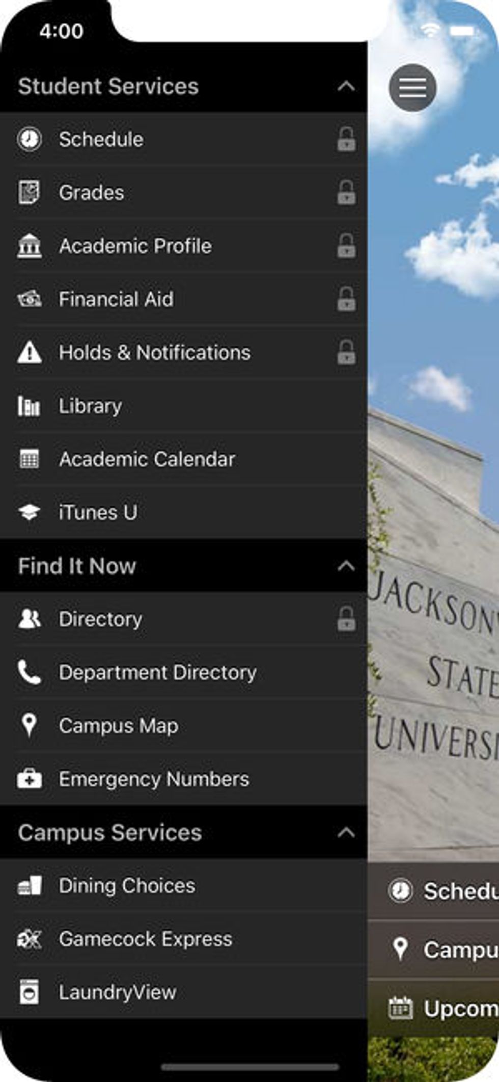 Your school may have its own version of this if you don't go to JSU, but our app allows you to look up library books / publications available in the library (as well as where they're at), check your grades and class rosters, class schedule and meeting location, laundry for every machine on every specific floor in every specific dorm / on-campus apartment (and set text message reminders), an event calendar, and a bunch of other helpful things that I don't use but you might love! There's so much in just this one app (even though they totally contracted out the menus and bus tracking to other apps…)