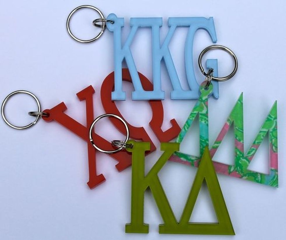 Keychains are such a simple way to show off sorority flair. Get your letters, your sorority's name, your mascot, your school name, or whatever you want! It'll bring you BIG joy to see a cute keychain on your little's lanyard, keys, or backpack!
