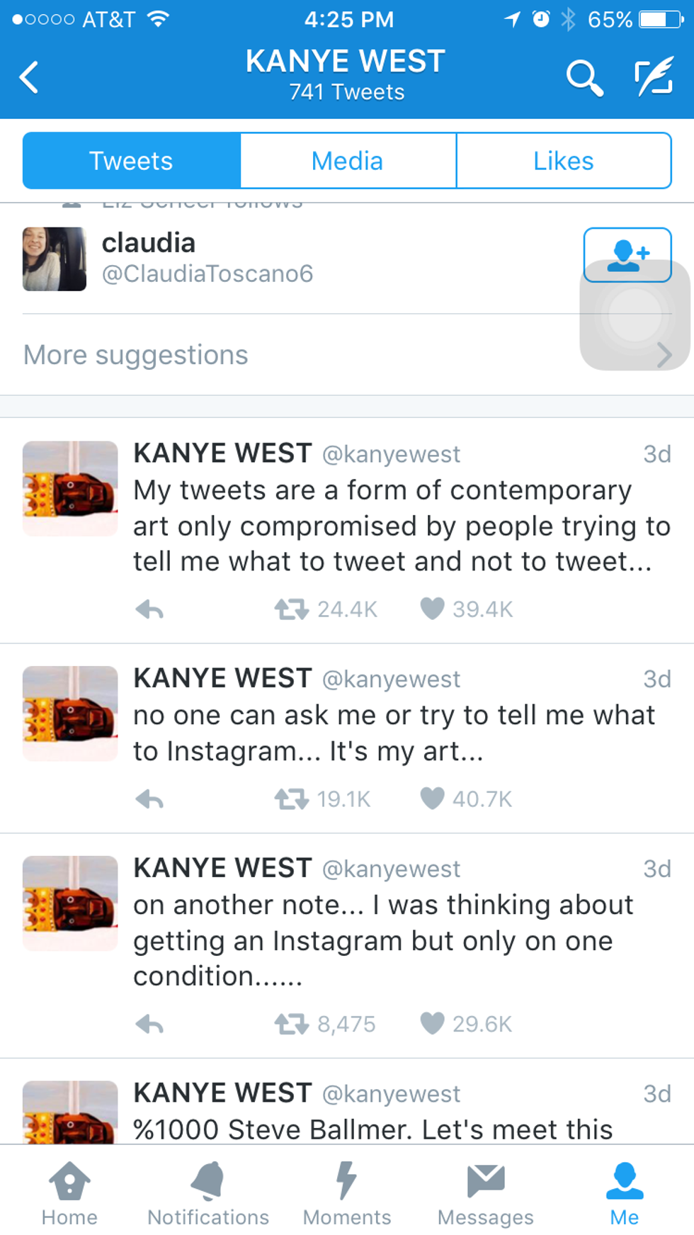 This man says and does what he wants, seriously he really does. His Twitter will profess to that. If you're looking for the one true badass who does not give a damn about what anyone says or thinks, Kayne is your guy. He will give you what he wants, he may offend you, but at the end of the day he'll be the one laughing and maybe you will too 😁