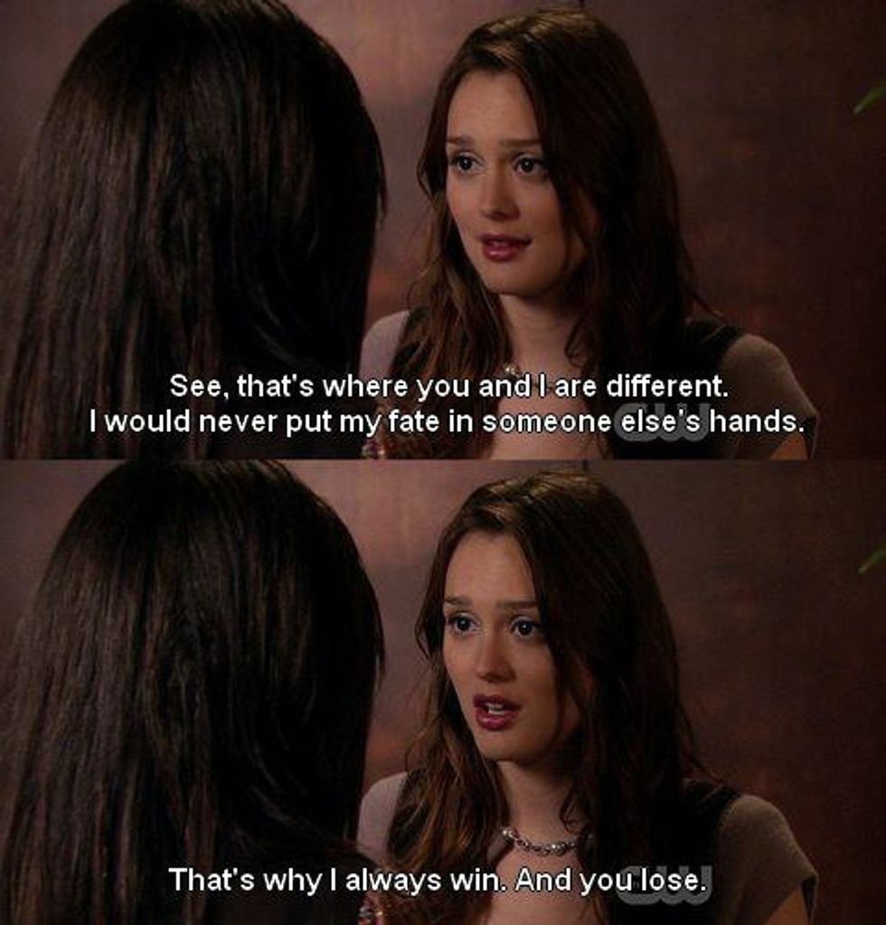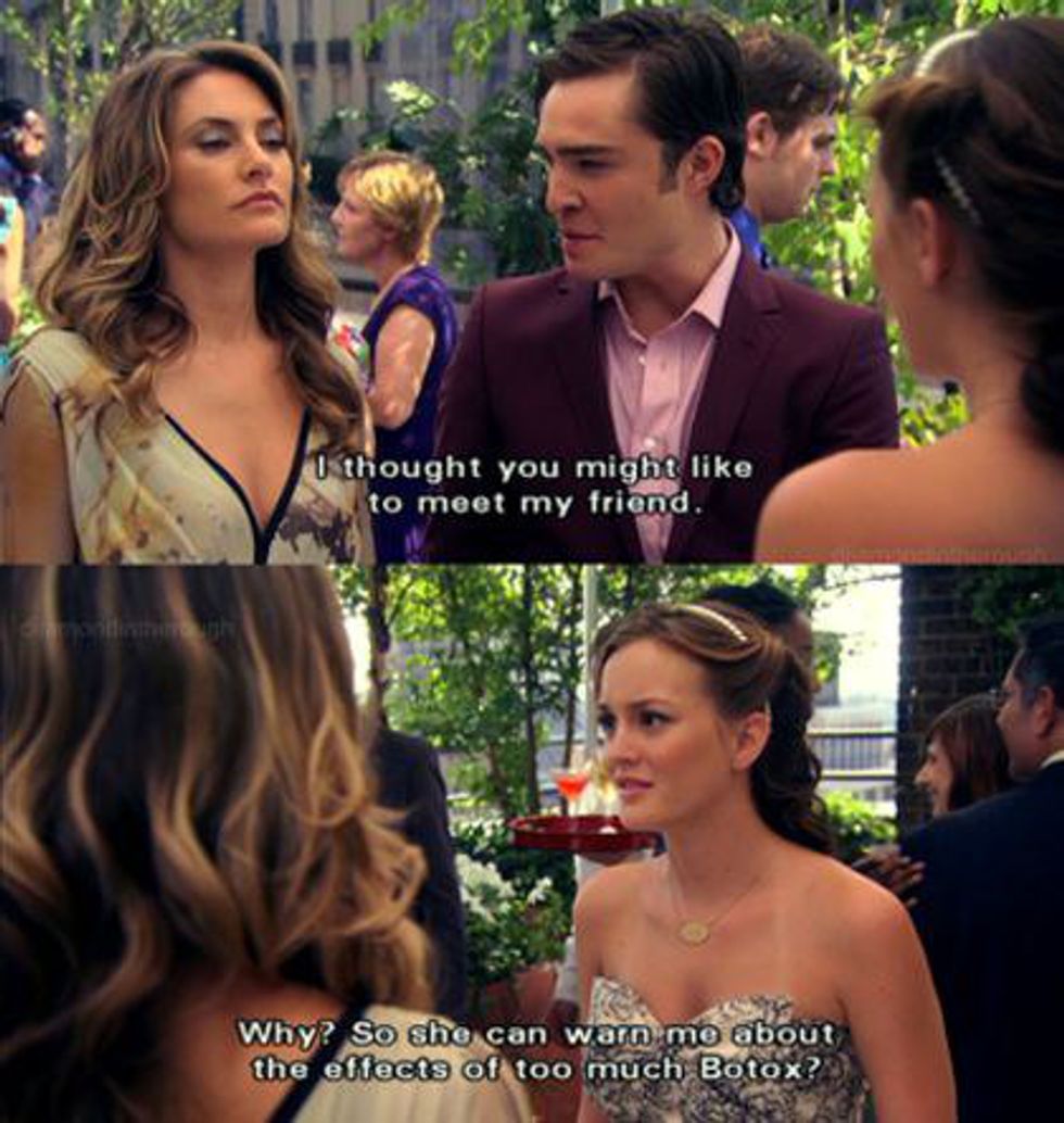 Chuck and Blair may just beat out Gossip Girl with their insults. These lines were not just entertaining but also extremely witty. Maybe thats part of the reason these two stayed at the top of the game. They didn't just manipulate the game, they manipulated the players. Watch what you say to them, because they always have something to say back.