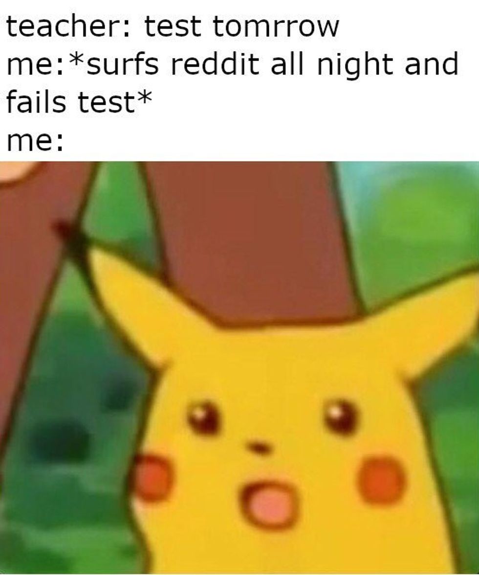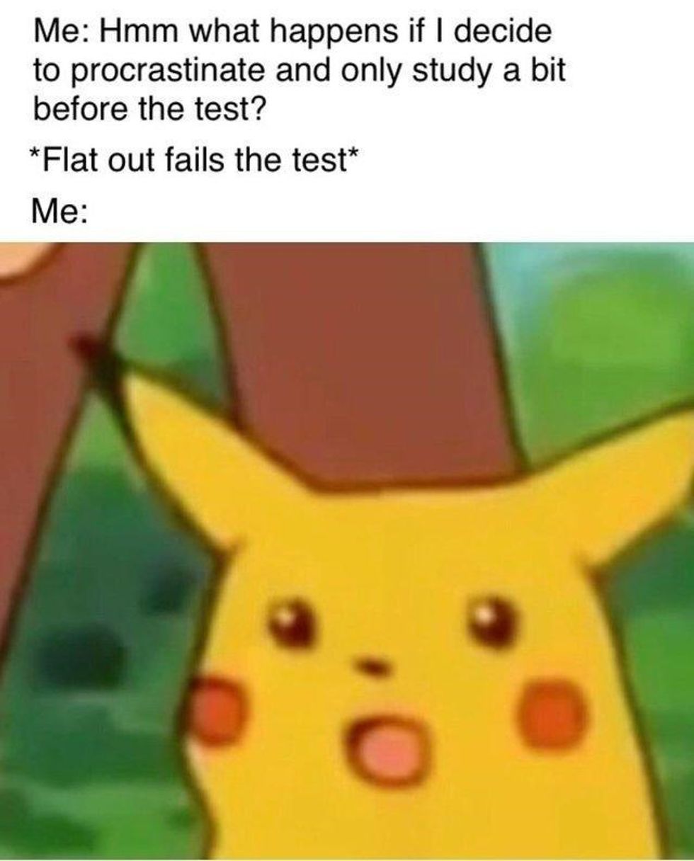 The surprised Pikachu meme has taken over the internet within the past month or so. College students love memes and there is truly no better meme to describe how we feel 99.9% of the time than the different recreations of this one. Enjoy these extremely hilarious and scarily relatable surprised Pikachu memes.