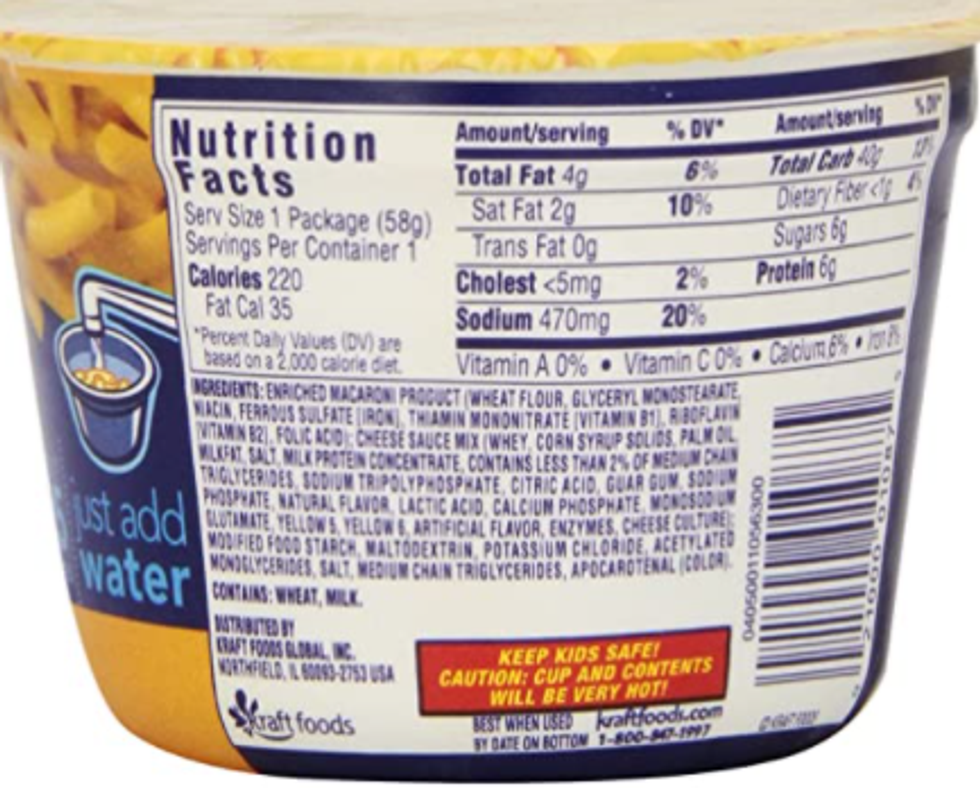 For those of us with classes that cover lunchtime dining hours, Mac and cheese cups are the saving grace. Easily made in the microwave, they're surprisingly tasty, and can be eaten quickly while hurrying to finish that assignment due before the next class. And this way no one skips lunch, because eating is important.