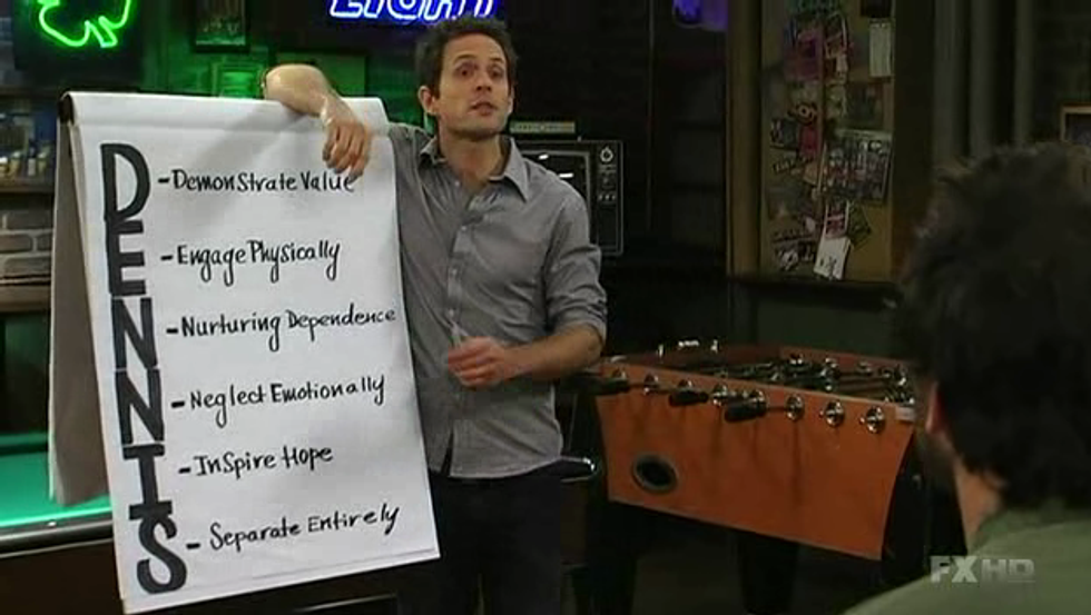 Dennis might be a sociopath, but he attempts to be helpful by showing Mac, Frank, and Charlie how he’s so successful with the ladies. Hilarity ensues as Mac and Charlie wildly misinterpret the system and end up ruining every date they attempt to go on. Frank forgoes Dennis’s advice entirely and just carries around 100 dollar bills and magnum condoms for his “magnum dong”.