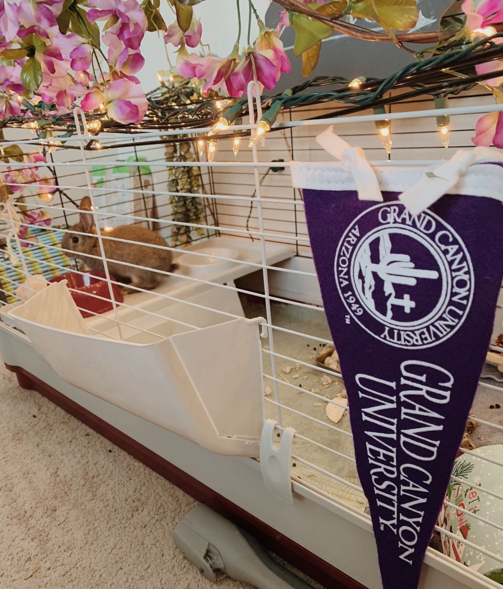 With that being said, this past year, my very best friend convinced me to get an emotional support bunny to bring with me to college! And I can very well say that it was one of the BEST decisions I've ever made! Being the home-grown Chicago girl I am, I knew that moving to a brand new state for the next eight months would be like a McDonald's playplace for my anxiety. So I gave in, and told my friend I wanted the information from her coworker about adopting one of her baby bunnies. We decided that the best first step to take was for me to babysit my friend's bunny Finley. While my best friend was on her 16th trip to Disney World, I got to watch her little guy.