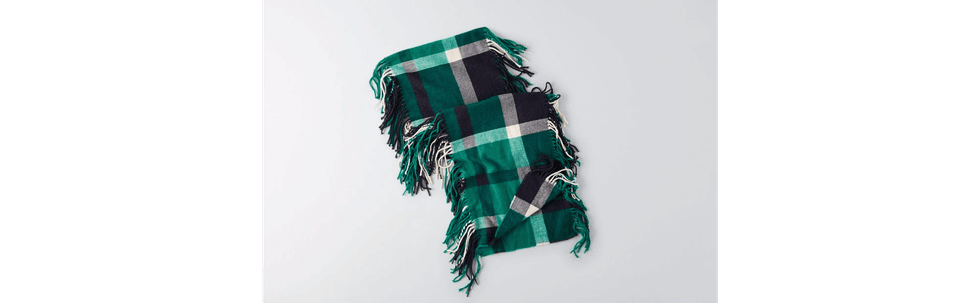 AEO Plaid Fringe Scarf in Green- American Eagle