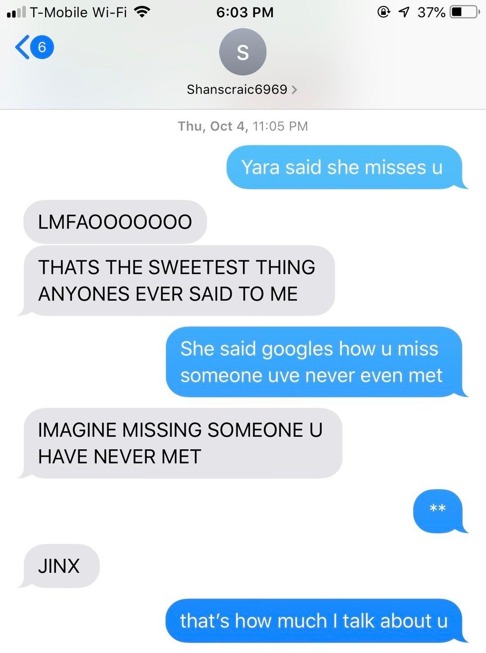 Walking into class together would always be followed with a sarcastic "ugh, not you two" even though we were always their favorite and it was obvious.