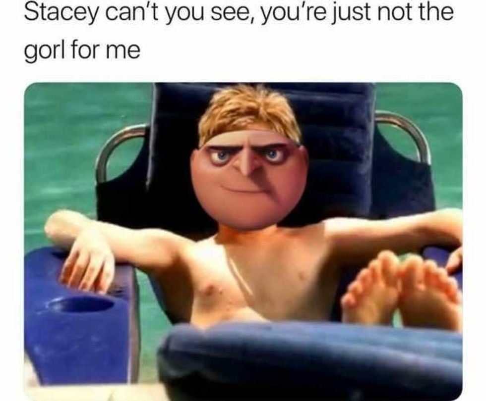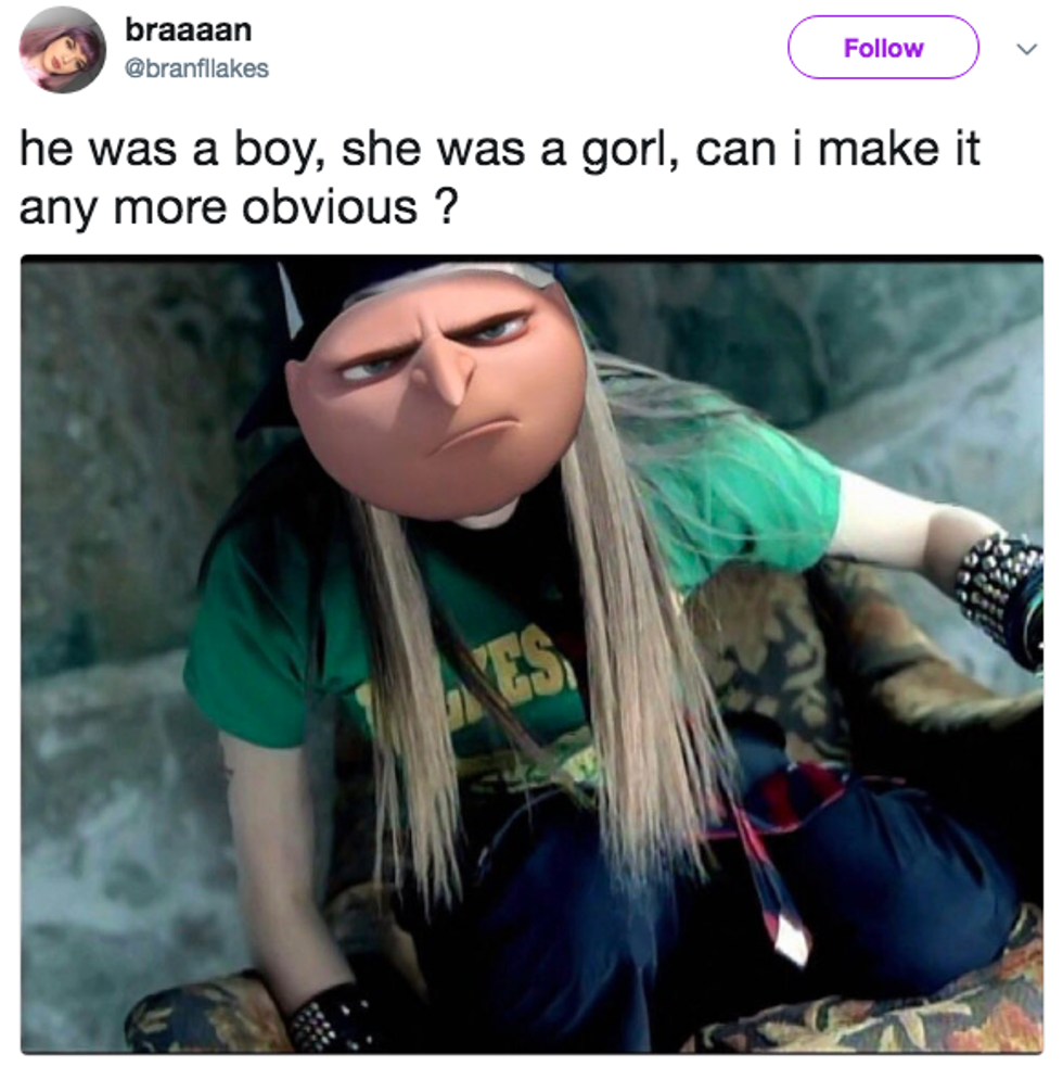 This week I haven't been very productive and I blame my roommate for introducing me to Gorl memes. I have been obsessively searching them for the past three days and think they are all great. So, since all it's can think about lately, I am publishing a list of some of my favorite Gorls. Enjoy!