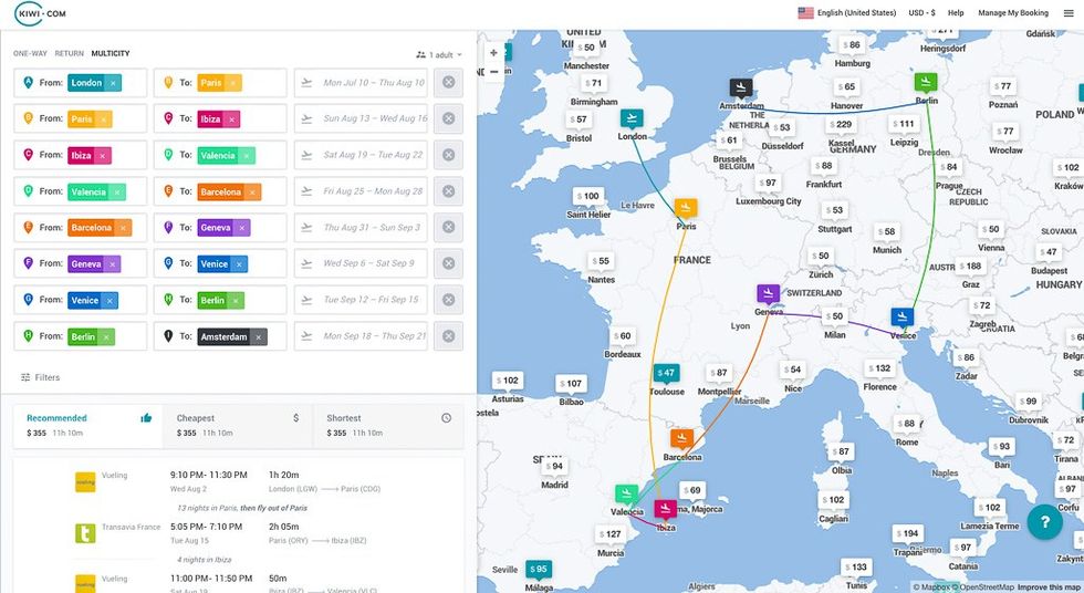 Kiwi is a newer addition to the world of cheap travel. Once you add the dates and your destination, Kiwi provides an interactive map complete with multiple combinations on how to arrive. A new concept that sets Kiwi apart is the idea of a travel plan that utilizes multiple airlines. Kiwi sets up your travel in a way that allows you to change planes, exit security, recheck luggage and complete the security process again, all the while ensuring cheap and fast travel.