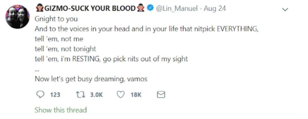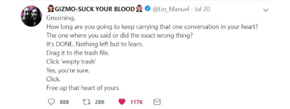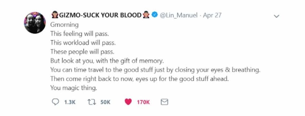 In honor of his new book, here are some of my favorite and most encouraging Lin-Manuel Miranda tweets to help you through all of your struggles.I can always count on Lin-Manuel Miranda's tweets to brighten up
