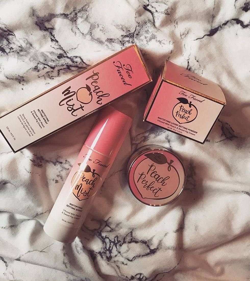 The Too Faced peach collection is definitely one of my favorite collections from the brand. The Peach Mist setting spray not only has the refreshing (but not overwhelming smell of peaches), but gives your makeup a flawless airbrush finish!