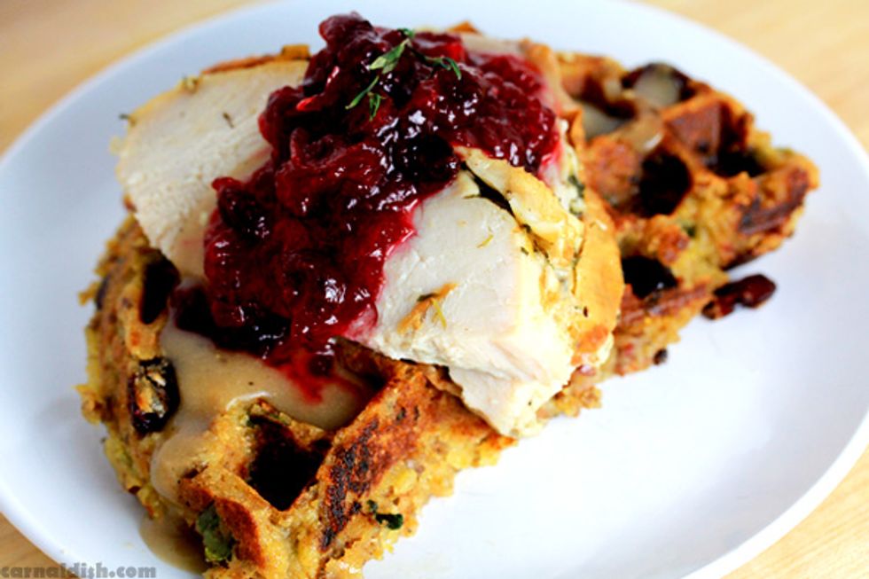 Chicken and waffles are good. Turkey and waffles, with cranberry syrup..amazing. You can even use the stuffing to make the waffles!