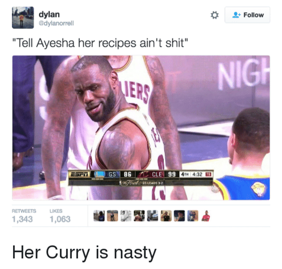 This NBA finals has had everything: world class basketball, fierce competition, rivalries, nut-hitting and grabbing, endless three's, trash-talking about cooking recipe's, Ayesha Curry's unnecessary insecurity for attention, and of course, hilarious memes and videos made by the internet.