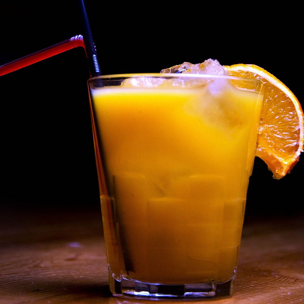 Orange juice, grenadine, and a double shot of tequila.