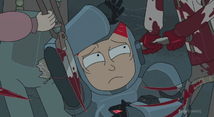 Morty was so adamant about not partaking in the purge, though Rick told him that in order to survive the night, Morty would have to "harness his repressed rage." And he definitely does. After receiving their armor and getting attacked by purgers, Morty fully gives in to his deep seeded rage and begins to massacre the lot, going so far as to shoot people in hiding and shoot at already dead corpses. The lesson here is...maybe not to repress our anger, but let it out in healthy doses. Let's not turn into Morty.