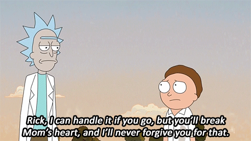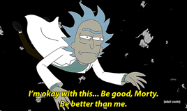 As he is about to die, Rick closes his eyes and states: "I'm okay with this. Be good, Morty. Be better than me." Oooo weee! That got me all kinds of emotional the first time I watched it! Of course, Rick ends up saving himself, but what matters is that in that moment, he was willing to put his grandson before himself. Something we have never seen Rick do before.