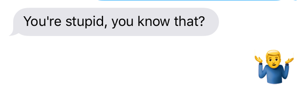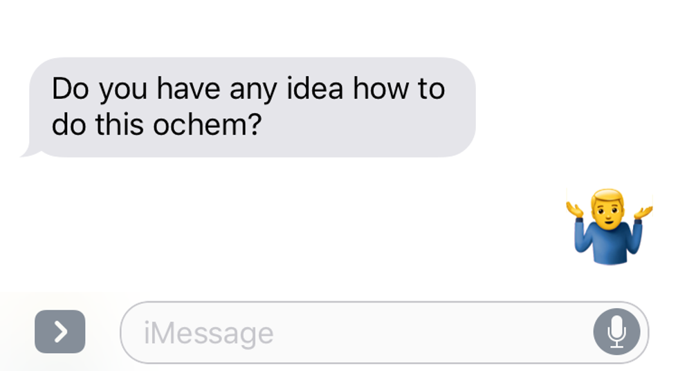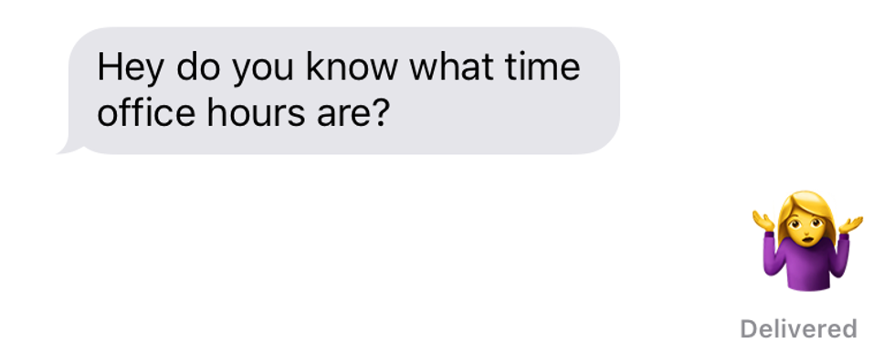 Apple has just released an update for the iPhone that includes new emojis and some new spins on classics! There are some new animals, some updated faces, and a fist bump. However, there is one new emoji that fits any situation, any time. This emoji is so versatile, I could send just it from now on. It conveys any emotion this sad husk of a student could possibly have. It is the shrug emoji.