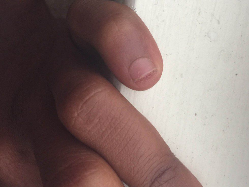 The quality may be a little crappy but just zoom in on my nail! My poor pinky! Brittle, and my white meat is exposed. It looks like it is dying from the outside in. I got my nails done at Diamond Nail & Spa near 120th & Crenshaw in Los Angeles, before doing my research. If you pamper yourself at the nail salon bi-weekly basis, I suggest you should start doing a little shop investigation.