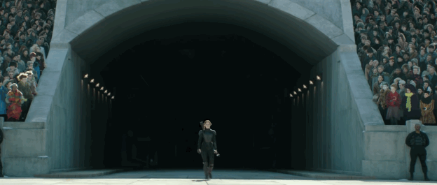 Katniss walks out for President Snow’s execution and the scene is so intense and thrilling. And for everyone who read the books, you begin to realize that this is the scene that she kills President Coin and you get even more excited for this scene to happen.