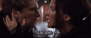This was my personal favorite scene of the whole movie. I could watch this scene over and over again and never get tired of it. When Peeta wants nothing but to give up, Katniss kisses him and says, “Stay with me.” Seriously, what more could you ask for?