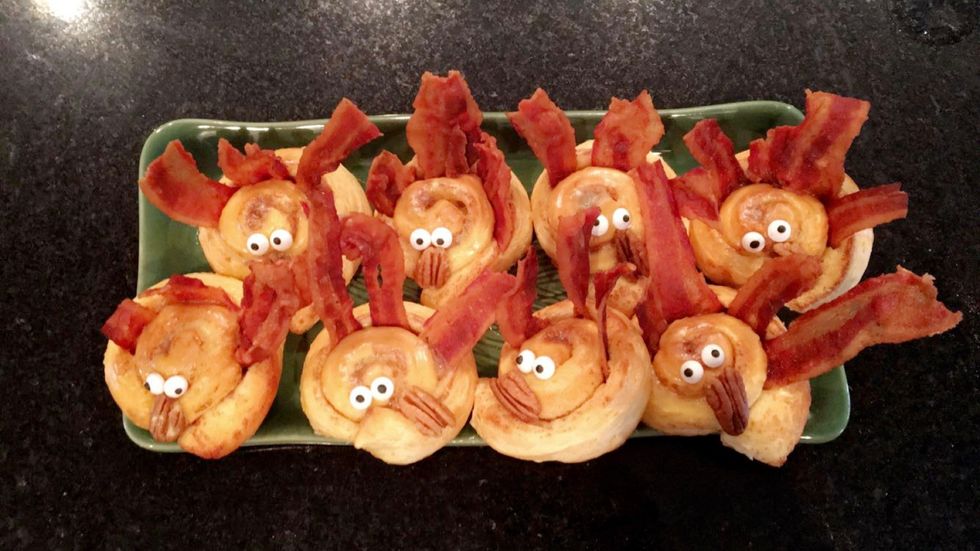 Fun turkey orange sweet rolls on Thanksgiving morning