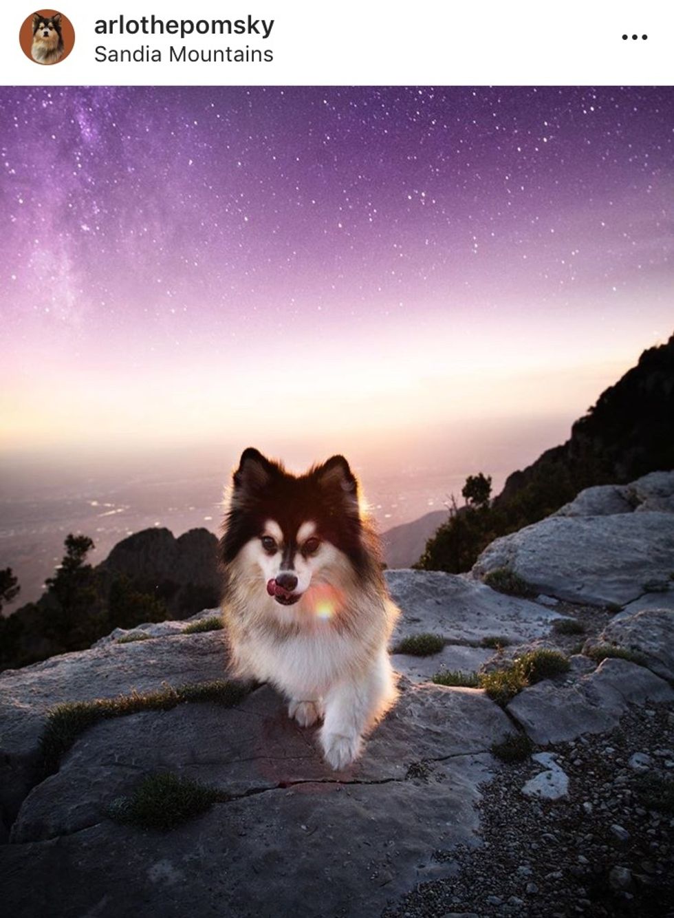 Arlo is a pomsky, half Pomeranian, half Siberian husky. This little fun-sized dude knows how to take a good photo. Look to him for tips on the perfect Insta aesthetic.