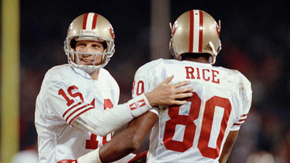 Jerry Rice entered the league in 1985. By then Joe Montana was a two time Super Bowl champion and two time Super Bowl MVP. Montana and Rice would lead the 49ers to two Super Bowls in the late 80s. Each would win a Super Bowl MVP and San Francisco became the team of the 80s.