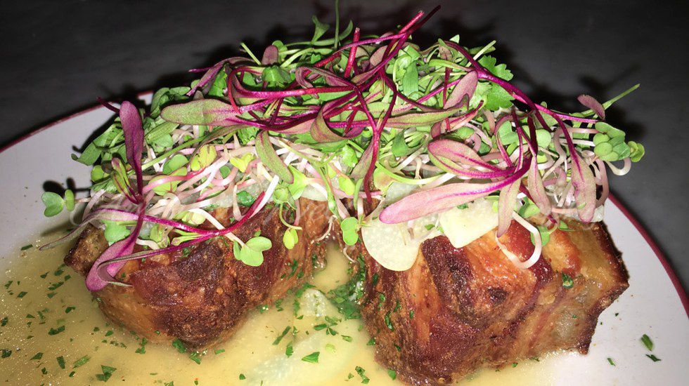 Next, we had the famous Chicharron Elephante. It was disappointingly fatty, soggy, and cold. And it was $39! For one tiny, disgusting slap of pork with fennel on top! Cray. The food was not even filling at all, sure it was pretty/aesthetic concept food, but it wasn't food in a conventional, or even barely edible, sense.