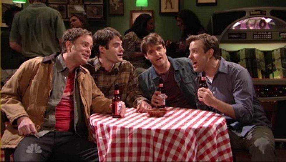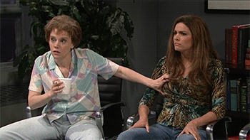 *Bill Hader spits coffee on Kristen Wiig*