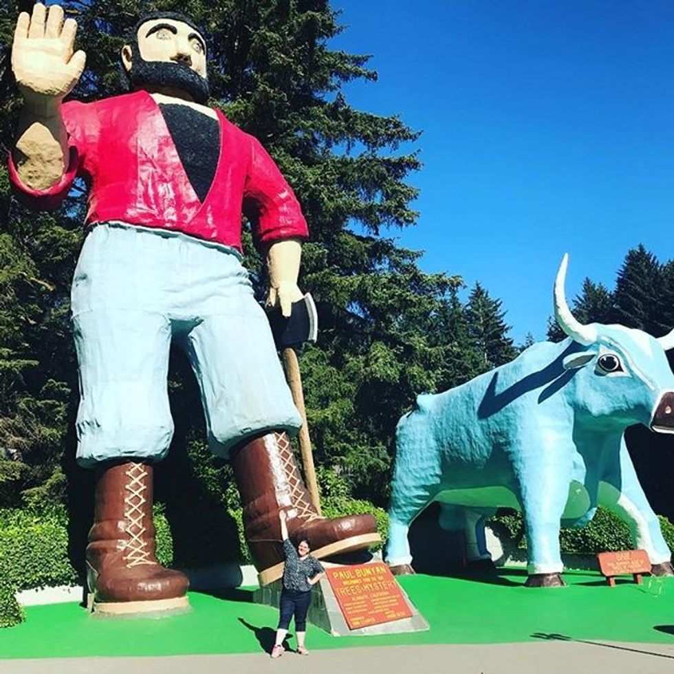Speaking of feeling small, these insane statues are located at Tree of Mystery in the Redwood forest. While Tree of Mystery is kind of like a giant tourist trap, the giant statues outside are pretty funny. Also, side note to point out, Babe the bull has correct anatomy....yeah...it's weird.