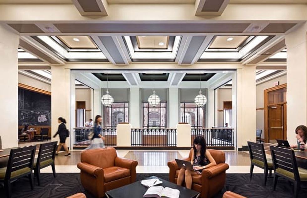 This historical building has rooms that feel like a library because everyone is always focused and at work. You will almost feel guilty if you're not working, which motivates you to get more done.
