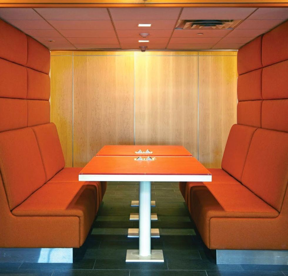 These orange booths are also a great place to cram with friends for an exam, or just to get some reading done.