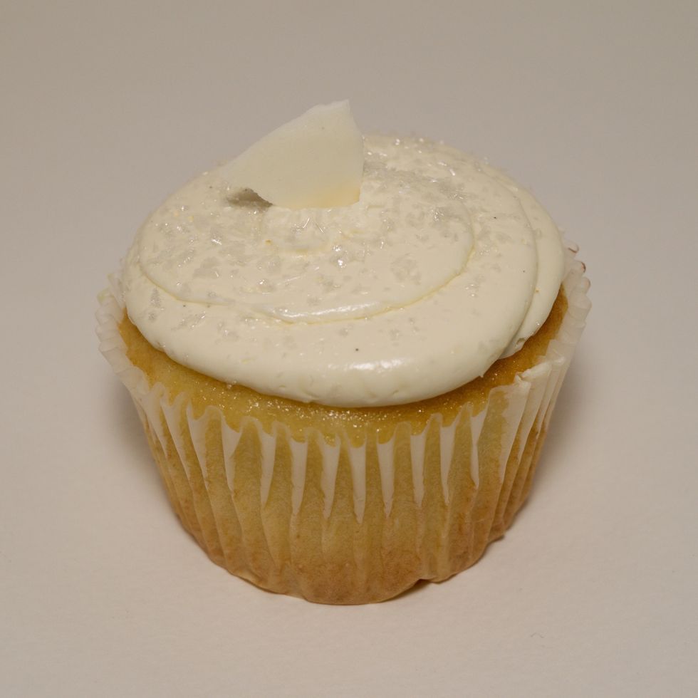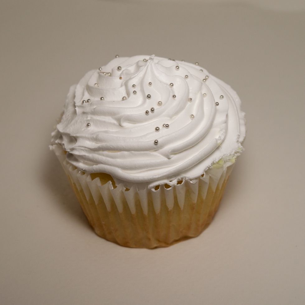 One of the four winning cupcakes from their episode of the Food Network's "Cupcake Wars." This vanilla bean cupcake is injected with an amazing four cream mixture, topped with a light, airy whipped cream frosting and sprinkled with beautiful silver dragees. There's no wonder why this is one of their best sellers!