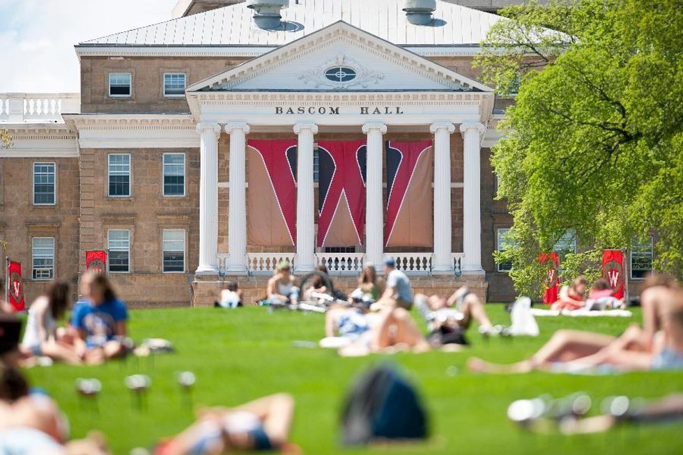 Grab a blanket, a book, and some friends to catch some sunshine on the green grass of Bascom Hill.